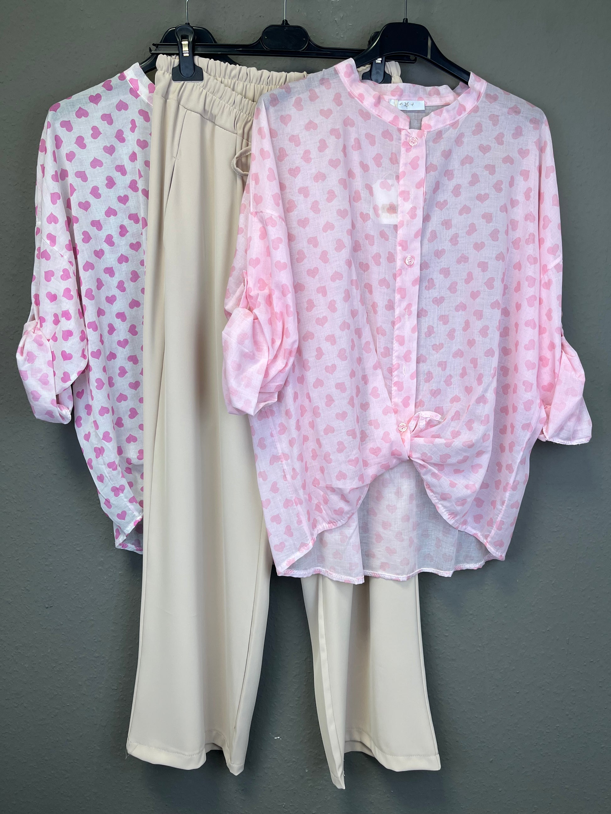 Bluse mit Herzchen, durchgeknöpft, kann auch lässig vorne geknöpft getragen werden. transparenter Stoff und ohne Kragen, ziehe ein Top drunter und du bist angezogen
